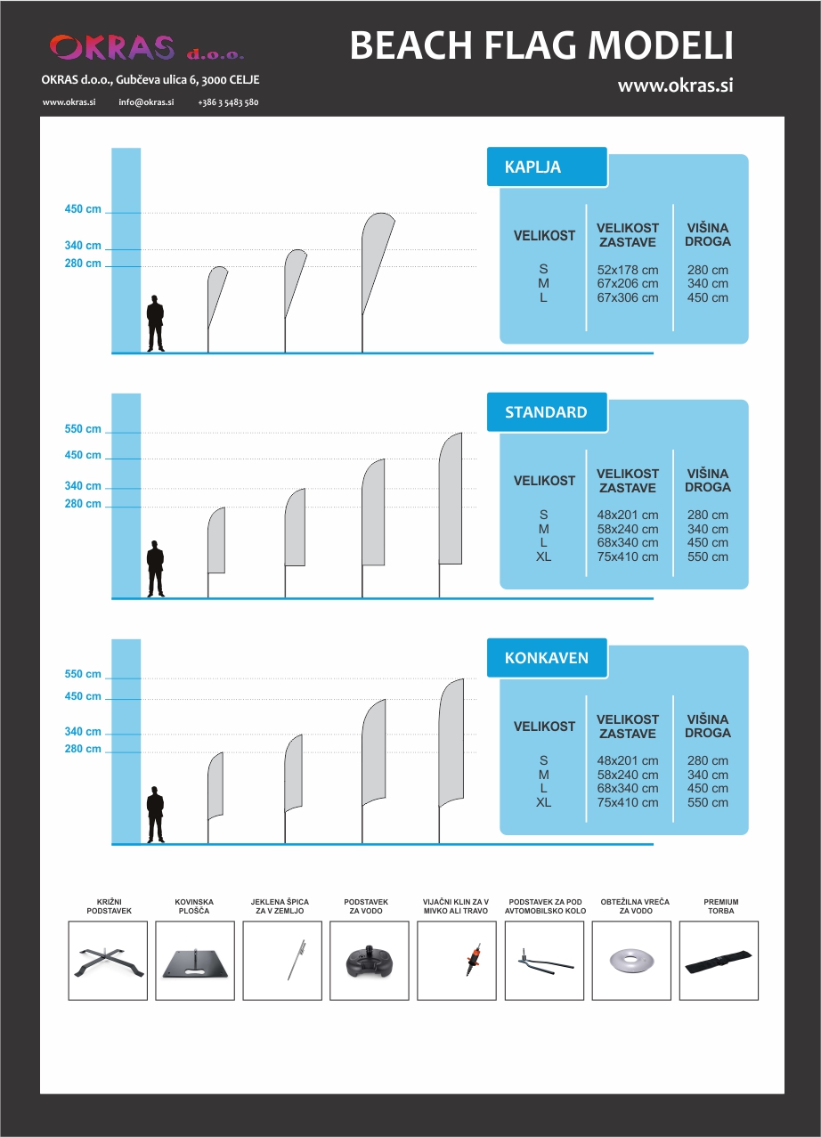 Beach flag reklamne zastave – model kaplja, standard ali konkaven